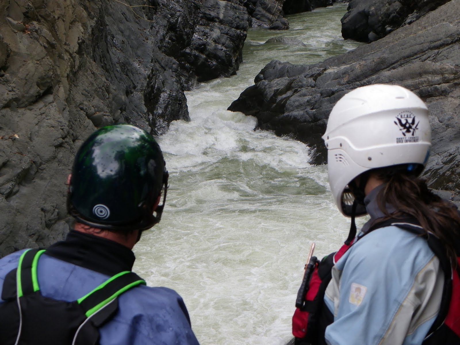 | Scouting a rapid on the Naranjo |