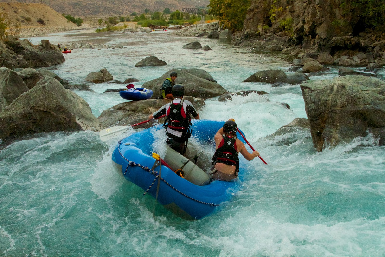 The Chelan Gorge run starts at the dam the makes the beautiful Lake Chelan. From there its a 2 mile paddle to the top of the gorge which starts your descent toward the Columbia River. The gorge starts with a couple class IV+ rapids that jump right out at you. You quickly make your way to the first class V and the true start of the Chelan Gorge.