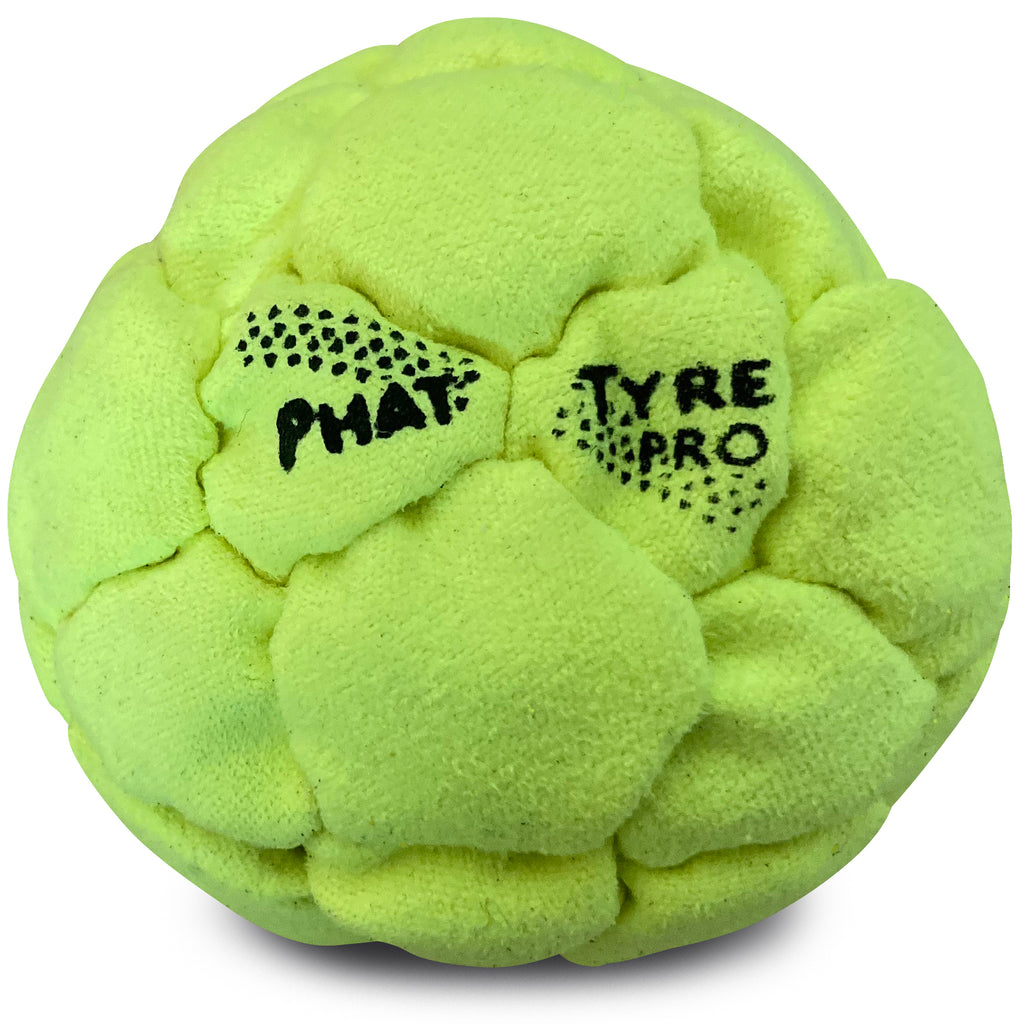 The Dirtbag Phat Tyre Pro is the new leader in freestyle footbags. Thirty-two panels of soft but durable cover material surround a potent new filler of ground-up recycled rubber and steel pellets. A substantially heavier footbag at 80 grams, this footbag kicks, stalls, and performs at a whole new level!